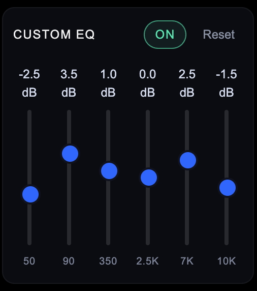 Real-time final EQ For the first time, you get an equalizer after all the mastering operations — as the final layer. This gives you the power to make those last tonal tweaks (brighten, cut, sculpt) right in the interface with A/B testing. Honestly, we still don’t know how we made it this far as a mastering platform without an EQ.