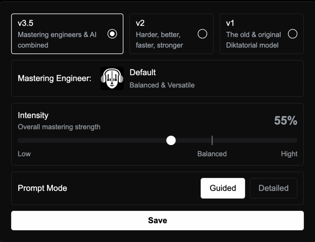 Automatic intensity levels There’s no need for manual intensity slider anymore (unless you want to override things). The system now dynamically interprets how forceful or gentle your revision should be, and applies that as part of the mastering chain.